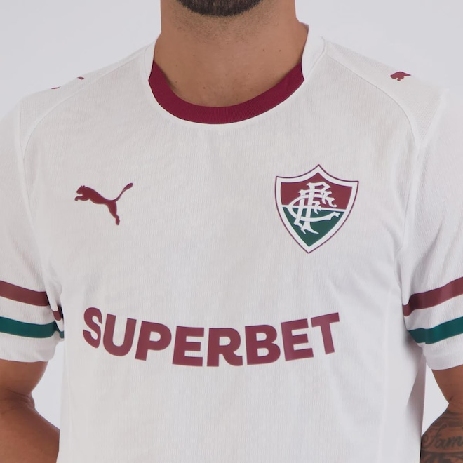 TecnologiaDry Cell: Mantém o suor longe da pele, enquanto os recursos de fluxo de ar anatomicamente colocados oferecem uma superior regulagem de temperatura para manter o corpo seco e fresco durante o uso.Composição: 100% PoliésterCor predominante: BrancaModelo: JogadorGênero: MasculinoOrigem: NacionalClube: FluminenseEscudo: EmborrachadoManga: CurtaGola: VDimensões aproximadas (A x L):P (S): 73 x 47 cmM (M): 76 x 52 cmG (L): 77 x 56 cmGG (XL): 77 x 58 cmEG (XXL): 79 x 64 cmEEG (3XL): 81 x 70 cm