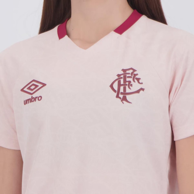 A Umbro se une à FEMAMA (Federação Brasileira de Instituições Filantrópicas de Apoio à Saúde da Mama) em uma parceria que vai além do esporte. Juntas, promovem a conscientização sobre a importância da prevenção e do diagnóstico precoce do câncer de mama. Cada peça da coleção especial celebra a força, a coragem e a união na luta contra a doença, incentivando mulheres de todo o Brasil a cuidarem da própria saúde. Com estilo e propósito, vestir Umbro agora também é um gesto de apoio à causa. Composição: 100% Poliéster Cor predominante: Rosa Indicado para: Casual Clube: Fluminense Gênero: Feminino Origem: Nacional Escudo: Emborrachado Manga: Curta Gola: V Dimensões aproximadas (A x L): P: 63 x 45 cm M: 64 x 48 cm G: 65 x 50 cm GG: 66 x 55 cm EG (2GG): 68 x 59 cm