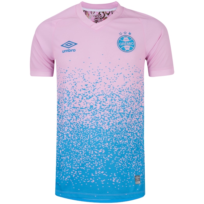 O Outubro Rosa é uma campanha que visa incentivar as mulheres a adotarem um estilo de vida saudável no dia a dia, com a prática de atividades físicas, boa alimentação e cuidados para evitar o câncer de mama. Dentro do esporte, o movimento ganha força para incentivar a conscientização de torcedoras apaixonadas contra a doença. A camisa na cor rosa simboliza a campanha e faz as mulheres literalmente vestirem a causa, apoiando o clube e o Outubro Rosa ao mesmo tempo. Por isso, torça pelo Grêmio com muito mais orgulho. A camisa 21 masculina tem mangas curtas, gola em “v”, canelada e com tira interna que protege do atrito junto à pele, além de uma estampa extremamente linda e personalizada. O logo da marca é bordado e sua barra traseira possui recorte arredondado. Compre já!