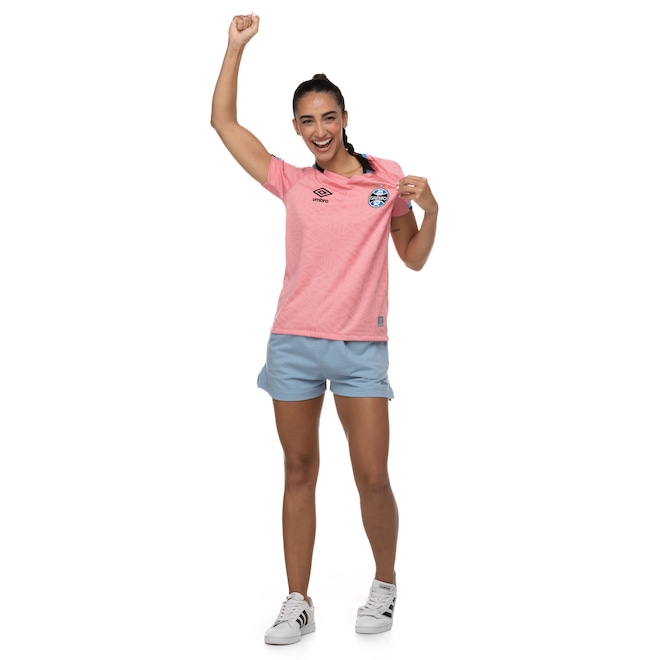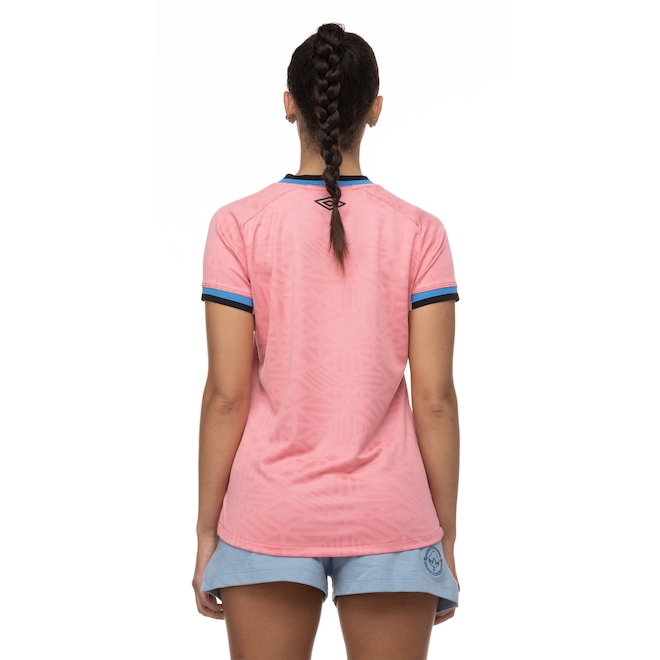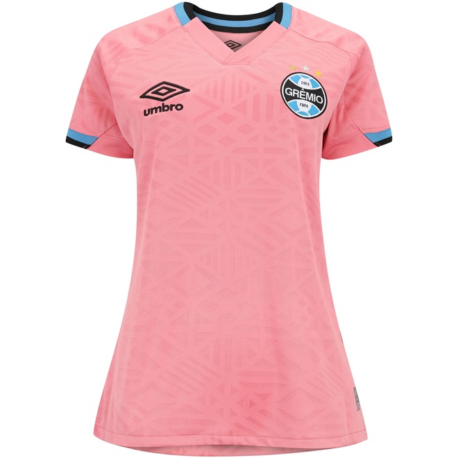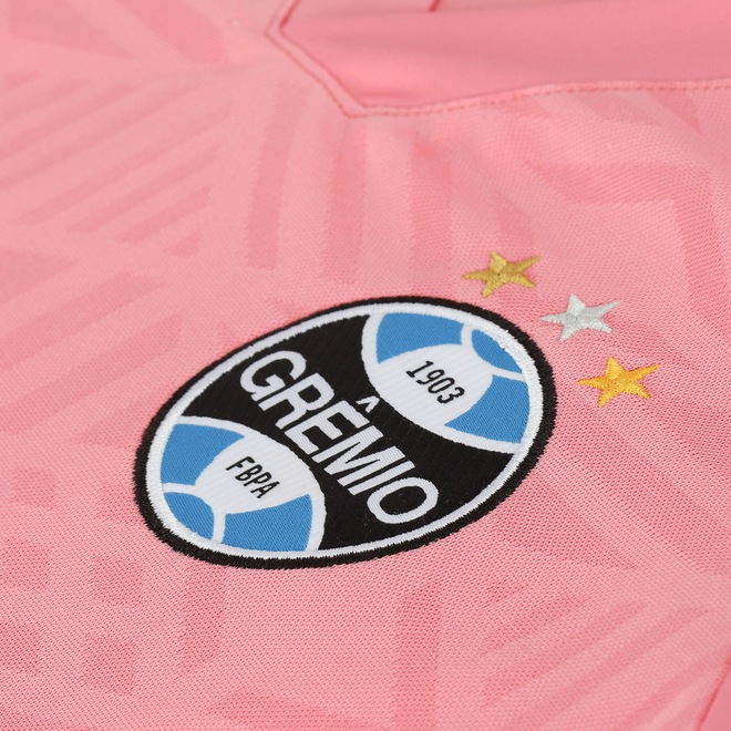 A Camisa do Grêmio 22 Outubro Rosa possui a leveza e ótimo caimento do poliéster, detalhes canelados nas cores do clube, além do simbólico escudo em destaque.