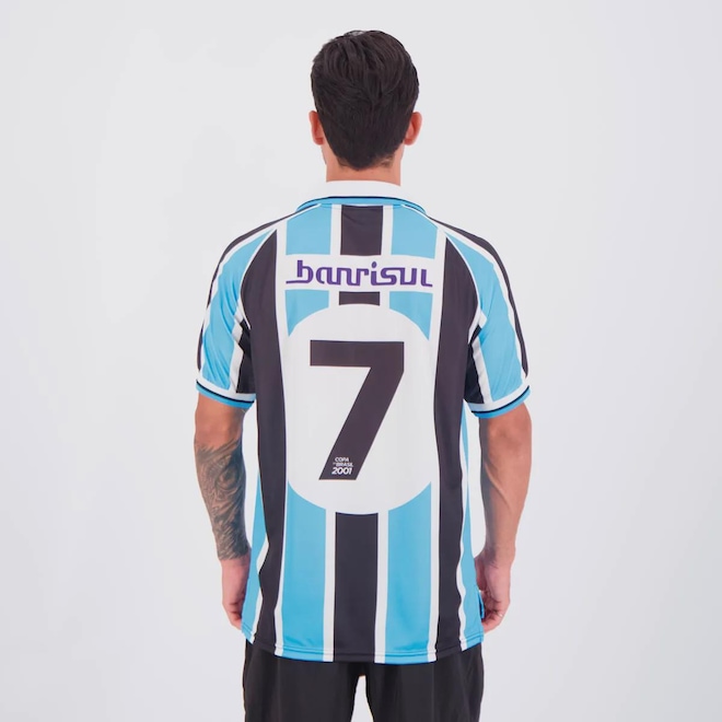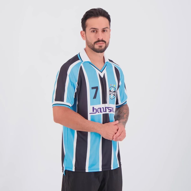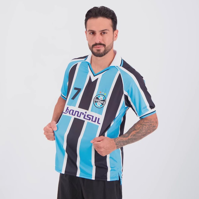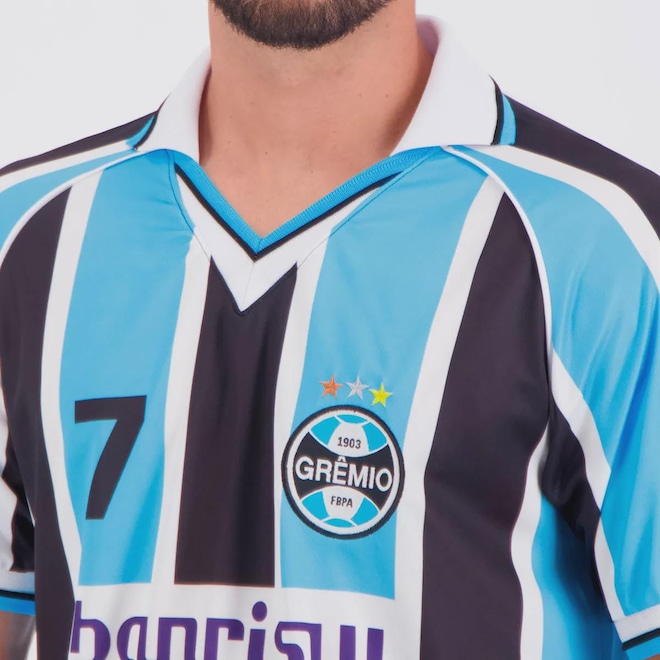 Composição: 100% PoliésterCor predominante: AzulGênero: MasculinoOrigem: NacionalEscudo: BordadoClube: GrêmioManga: CurtaGola: PoloDimensões aproximadas (A x L):P: 70 x 53 cmM: 72 x 55 cmG: 74 x 57 cmGG: 76 x 59 cm