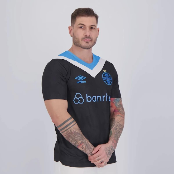 Geromel é um zagueiro experiente, com grande leitura de jogo e calma sob pressão. Seu posicionamento impecável e desarmes precisos fazem dele uma muralha defensiva. Líder natural, é a base sólida que dá confiança à defesa, sempre atento a cada detalhe do jogo.- Composição: 100% Poliéster