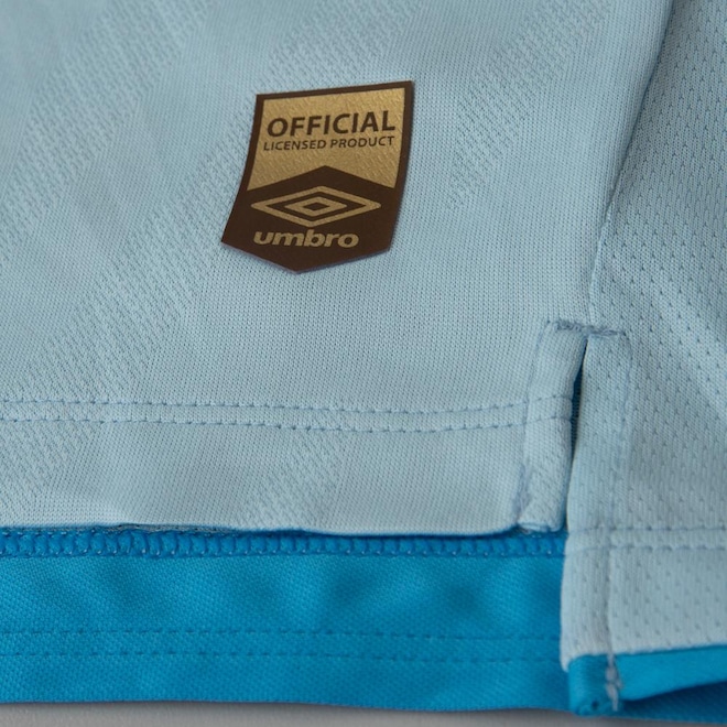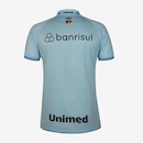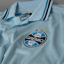 A alma celeste do Imortal em versão retrô. A nova camisa oficial 2 do Grêmio resgata a história com design moderno, performance e orgulho gremista em cada detalhe. - Modelagem fit com frente em jacquard e costas em tecido mesh respirável; - Gola polo em retilínea texturizada, com fechamento especial; - Cor predominante azul celeste; - Grafismos frontais modernos e detalhes em branco sublimado; - Listras com as três cores do Grêmio aplicadas na gola e nas mangas; - Palavra IMORTAL aplicada na parte traseira da gola; - Barra e gola em retilínea com acabamento premium.