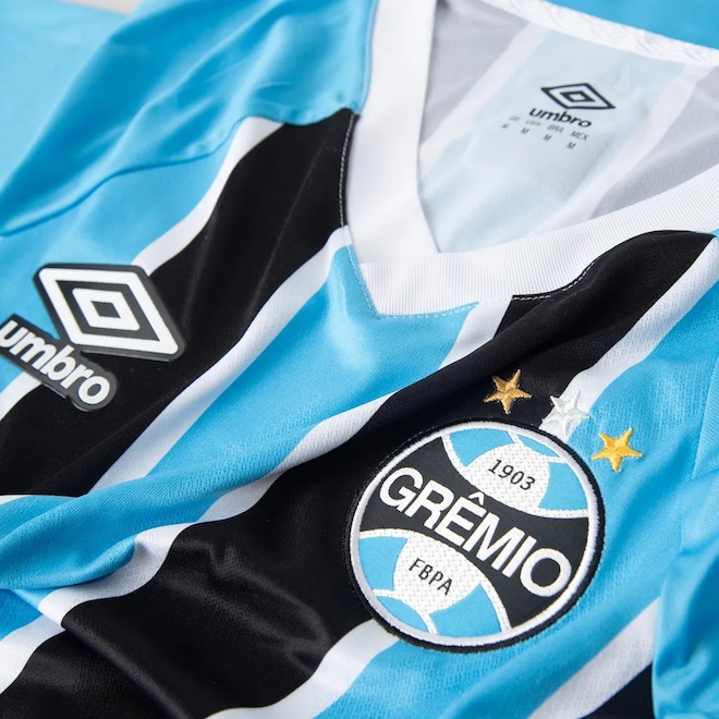 - Sobre o produto - Camisa Grêmio Umbro Uniforme 1 2025 Torcedor - Masculino - A Camisa Grêmio Umbro é um tributo à paixão dos gremistas, refletindo a união dos torcedores com o clube em qualquer lugar do mundo. Criada para reforçar a conexão dos torcedores com o Tricolor, ela carrega o orgulho de ser Grêmio, em todos os cantos do planeta. - - Produto Lincenciado Oficial Grêmio - Informações Adicionais - Gola: Decote em V - Tecido: Frente - 100% Poliéster / Costas - 97%Poliéster/3%Elastano - Escudo: Bordado - Manga: Curta - Medidas Aproximadas (A) x (L): - P: 69 x 46 cm - M: 68 x 50 cm - G: 70 x 53 cm - GG: 74 x 56 cm - XG(2GG): 77 x 61 cm - ref: M16SM0