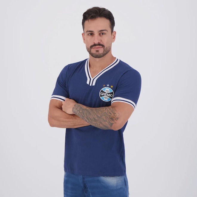 Composição: 100% AlgodãoCor predominante: Azul MarinhoIndicado para: CasualGênero: MasculinoOrigem: NacionalEscudo: BordadoClube: GrêmioManga: CurtaGola: YDimensões aproximadas (A x L):P: 68 x 48 cmM: 69 x 50 cmG: 72 x 53 cmGG: 75 x 54 cmEG: 78 x 58 cm