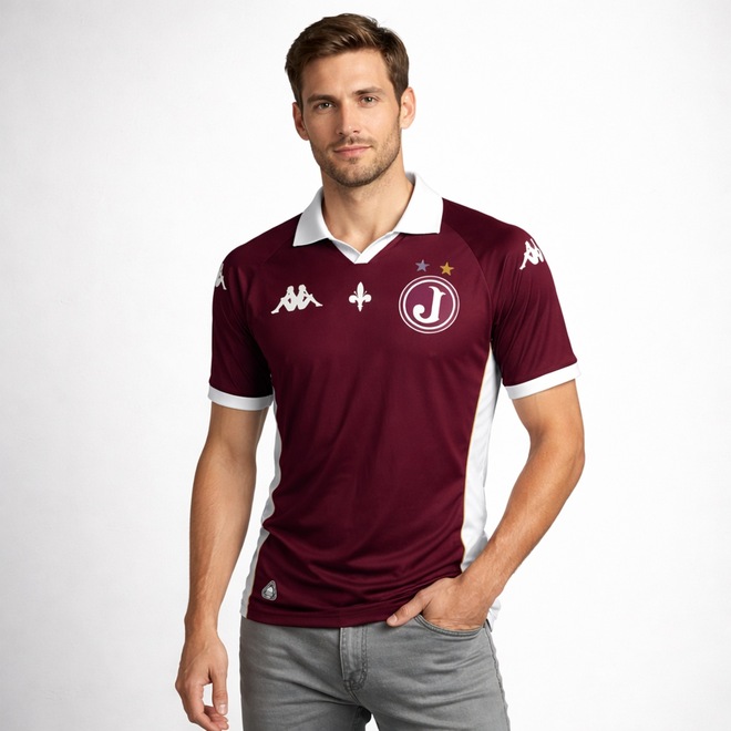 A Camisa Juventus da Mooca é muito mais que um uniforme: é símbolo de tradição e paixão. Com sua gola polo elegante e o escudo em patch, ela transmite autenticidade e orgulho do clube. Seu design clássico combina as tradicionais cores grená e branco, que marcaram gerações.