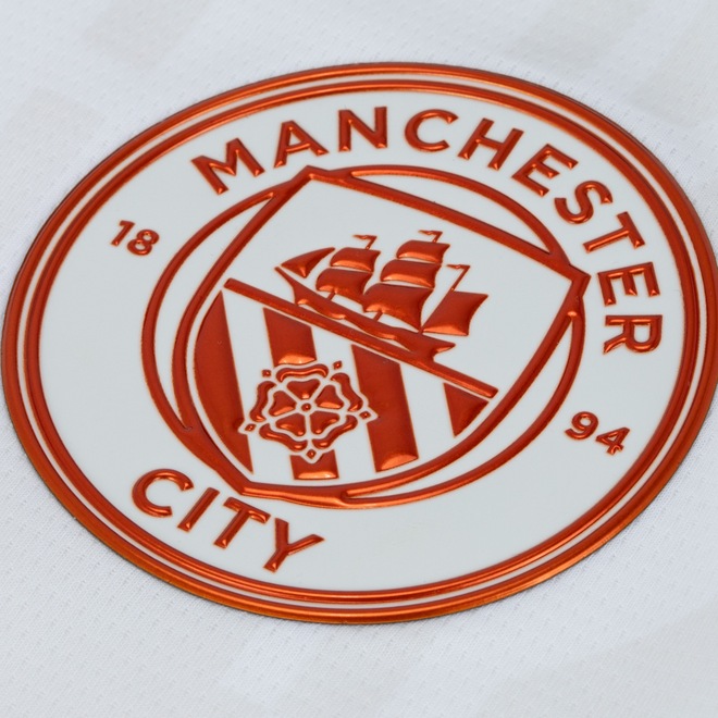 Esta camisa traz um design inovador, com as cores e o emblema icônico do Manchester City, destacando a elegância do clube e o espírito de vitória.