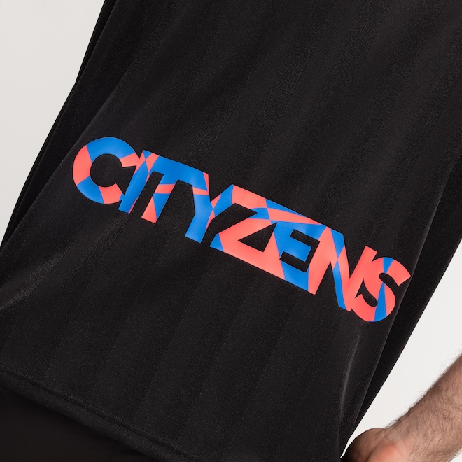 Com um design elegante e moderno, esta camisa apresenta o logo do Manchester City em relevo emborrachado, adicionando um toque de sofisticação e autenticidade à sua aparência.