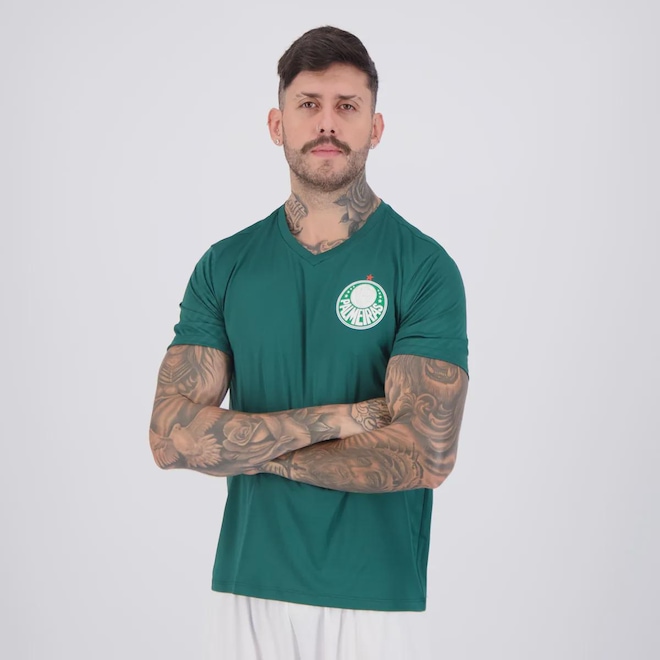 Composição: 100% PoliésterCor predominante: VerdeIndicada para: CasualGênero: MasculinoOrigem: NacionalClube: PalmeirasEscudo: EstampadoManga: CurtaGola: VDimensões aproximadas (A x L):P: 67 x 51 cmM: 69 x 53 cmG: 71 x 55 cmGG: 73 x 57 cm