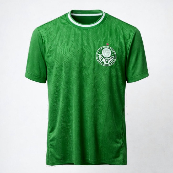 O destaque fica por conta do escudo do Palmeiras bordado no peito, que traz acabamento de alta qualidade e reforça a autenticidade da peça. O design em verde tradicional com detalhes sutis em textura no tecido valoriza ainda mais o visual esportivo. A peça conta com gola redonda bordada com acabamento reforçado, que oferece maior durabilidade e um ajuste confortável. As mangas com detalhes em branco adicionam um toque moderno e elegante ao uniforme.