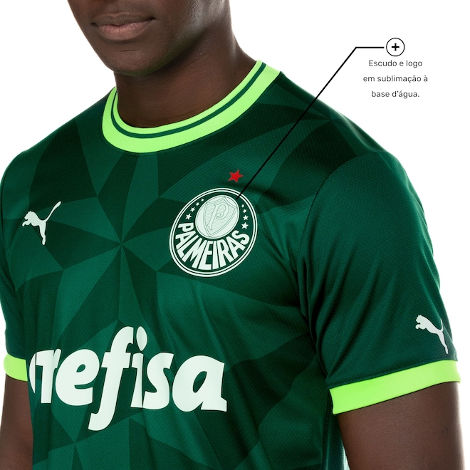 O atual manto Home da temporada 23 do clube estabelece um paralelo entre os dois times históricos das décadas de 60 e 70, respectivamente chamados de Primeira e Segunda Academia, com a geração atualizada do clube, que avança com uma história repleta de conquistas de títulos.Essa Camisa I 23 do Palmeiras foi feita através da iniciativa FOREVER BETTER, compromisso sustentável Puma, aliado à respirabilidade da tecnologia Dry Cel que garante excelente gerenciamento do suor e conforto duradouro.Possui estampa personalizada com polígonos tom sobre tom, formando uma estrela no centro do peito, tecido em mesh pollen nas costas e mangas, além de gola canelada com tira interna em tecido que ajuda a diminuir o desconforto do atrito da costura.No lado esquerdo do do peito se destacam o escudo e logo em sublimação à base d'água com a estrela vermelha simbolizando o clube campeão.Não perca a temporada 23 e vista o “manto” para demonstrar a paixão e orgulho pelo clube na construção de um mundo melhor para todos. Compre já!FOREVER BETTER - Compromisso PUMA para uma pegada sustentável em prol de um mundo sempre melhor.