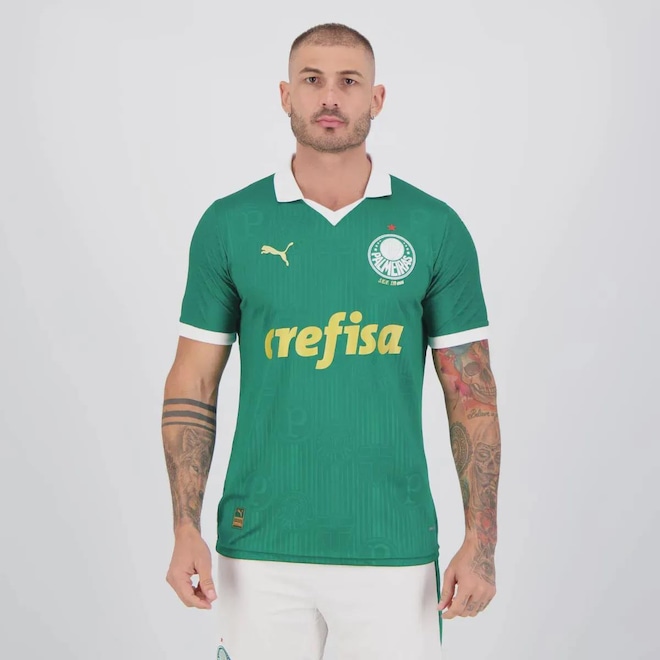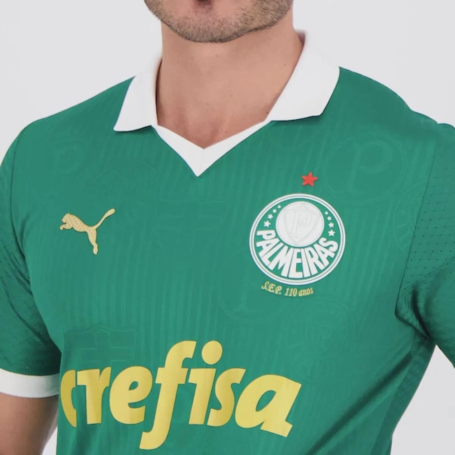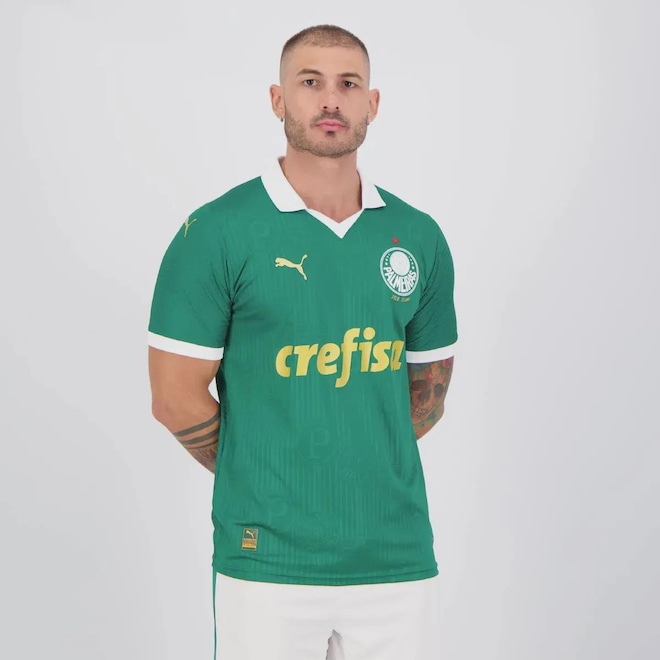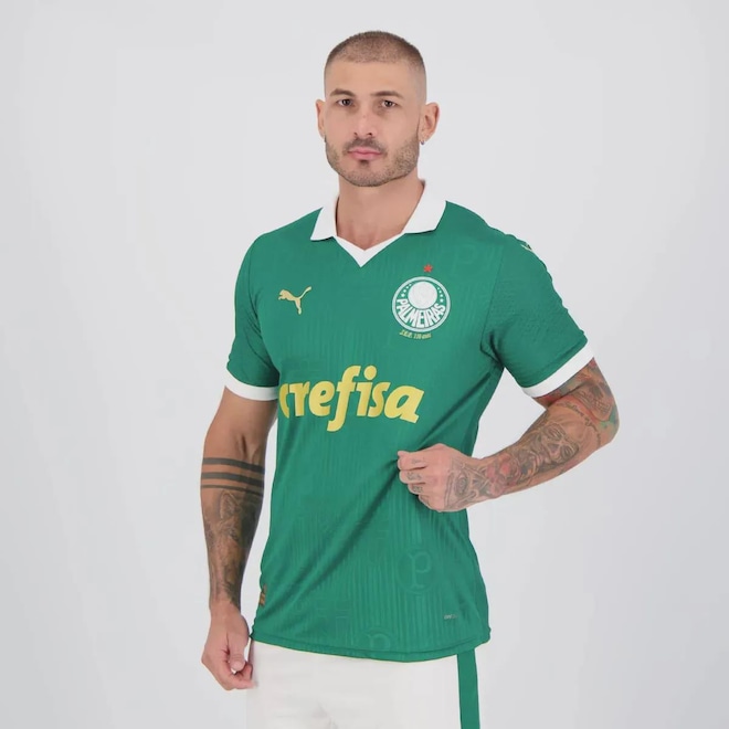 Vitor Roque é uma promessa do futebol brasileiro, com habilidade excepcional, velocidade e visão de jogo apuradas. Seu estilo é dinâmico, driblador e letal na finalização. Jovem, mas com maturidade em campo, já encanta torcedores com seu talento imbatível.O que nos torna família é o Palmeiras! Desenvolvido pela Puma, os uniformes do Palmeiras para 2024/2025, traz o legado de um time vencedor, enaltecendo o grande amor pelo Verdão que vem de berço, lembrando que família não é apenas o sangue que define, mas sim o amor, a luta e tudo que nos une no mesmo objetivo. Comemorando os 110 anos de existência os mantos titular e reserva exibem grafismos de todos os escudos utilizados pelo Verdão desde 1914, traz o escudo atual usado desde 1959 em destaque e abaixo dele a frase "S.E.P 110 anos" bordado em dourado simbolizando a história vitoriosa desde sua fundação.