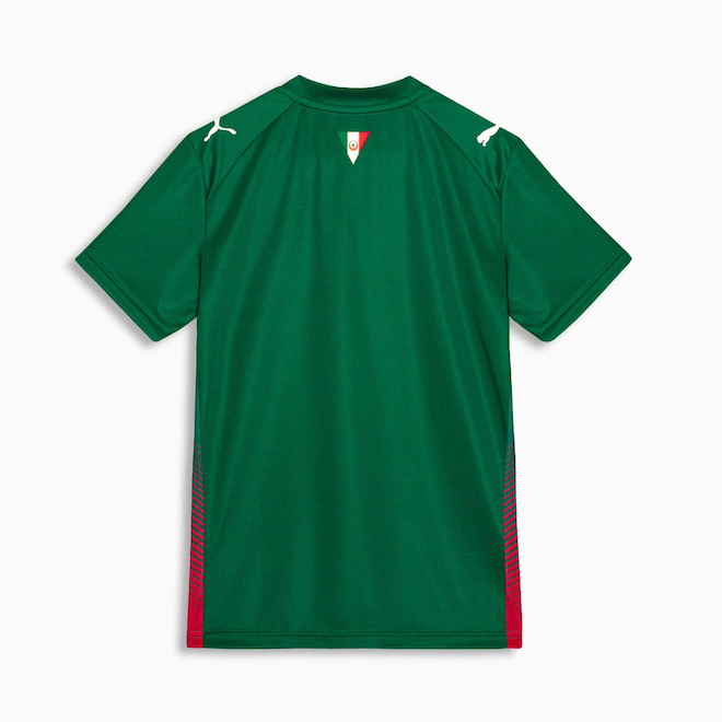 O escudo oficial e o logo Puma aparecem bordado, acompanhados de patrocínio aplicado na frente. Cada detalhe reforça a tradição e a originalidade, com selo holográfico e distintivo oficial que asseguram a qualidade do produto.