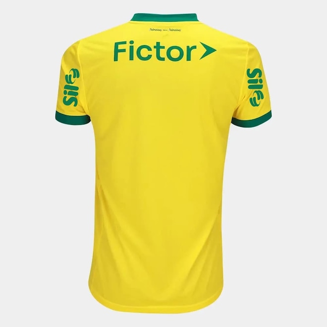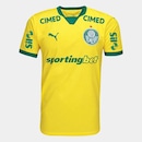 A Camisa Palmeiras III Puma 25/26 Torcedor Amarela é a escolha perfeita para torcedores que desejam mostrar paixão e estilo dentro e fora dos estádios. Com design exclusivo em amarelo vibrante e detalhes em verde, ela traz a identidade do Verdão de forma autêntica e moderna. Produzida com tecnologia dryCELL da Puma, garante conforto e respirabilidade, mesmo nos jogos mais intensos. INFORMAÇÕES TÉCNICAS: - Material leve e de alta performance, ideal para o dia a dia e partidas; - Gola V com acabamento em verde que valoriza o visual; - Logo oficial do Palmeiras e patrocinadores estampados com alta qualidade; - Modelagem para maior liberdade de movimento; - Produto oficial licenciado para torcedores exigentes. Medidas Aproximadas (Altura x Largura): P: 72 x 46 cm M: 73 x 49 cm G: 76 x 56 cm GG: 77 x 58 cm 2GG: 80 x 64 cm 3GG: 81 x 68 cm 4GG: 83 x 74 cm 5GG: 86 x 81 cm