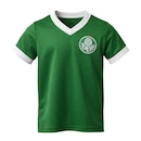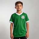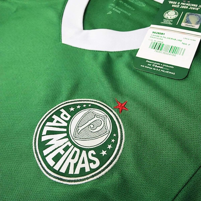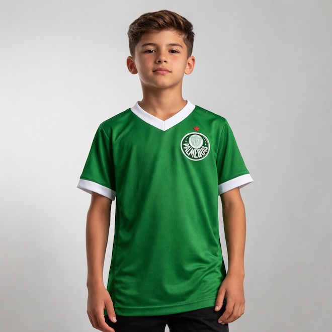 O modelo conta com escudo do Palmeiras bordado no peito, proporcionando um acabamento premium, maior durabilidade e um visual autêntico. Seu design clássico na cor verde com detalhes em branco na gola e nas mangas valoriza ainda mais a identidade do clube. A gola em V com acabamento reforçado oferece melhor ajuste ao corpo e mais conforto, enquanto a modelagem infantil garante liberdade de movimentos para o dia a dia.