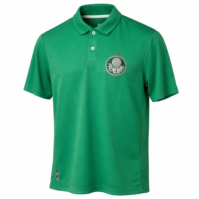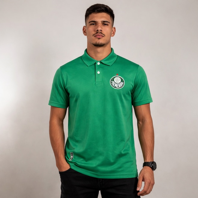 - Gola polo estruturada para visual elegante e com uma leve escrita "Palmeiras"