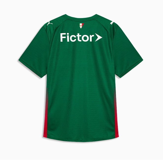 O escudo oficial e o logo Puma aparecem emborrachados e texturizados no peito, acompanhados de patrocínio aplicado na frente e assinatura especial nas costas. Cada detalhe reforça a tradição e a originalidade, com selo holográfico e distintivo oficial que asseguram a qualidade do produto.