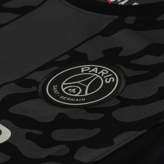 O escudo do PSG, um dos mais icônicos do futebol, está presente com destaque na camiseta, permitindo que os pequenos torcedores mostrem seu orgulho pelo clube de Paris.