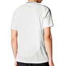 - Detalhamento: Camiseta com gola V canelada, mangas curtas, logo da Adidas estampado no lado direito do peito e escudo do Real Madrid no lado esquerdo, destacando a identidade esportiva com estilo. Três listras que fazem referência à marca aplicadas nas mangas, detalhes em recortes de tecido microperfurado que favorecem a respirabilidade e o conforto durante o uso, e escrita Aeroready na parte frontal, próxima à barra;