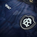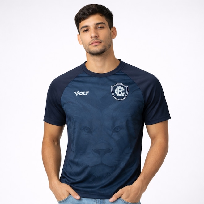 O grande destaque fica por conta do grafismo do leão em destaque na parte frontal, aplicado de forma sutil no tecido, trazendo identidade e imponência ao visual. O modelo conta ainda com o escudo do Remo em patch no peito, reforçando a tradição do clube. A camisa possui gola redonda com acabamento reforçado, oferecendo melhor ajuste e durabilidade. Seu design é complementado por mangas raglan em tom contrastante, que garantem mais mobilidade e um visual esportivo diferenciado.