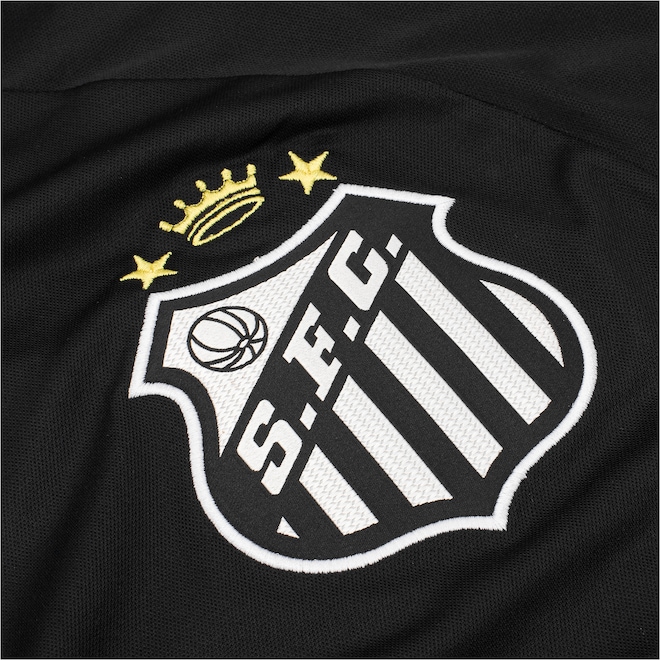 A estampa personalizada e o escudo bordado do Santos reforçam a autenticidade e o orgulho.