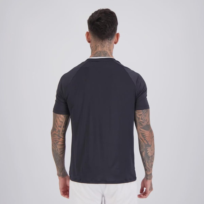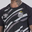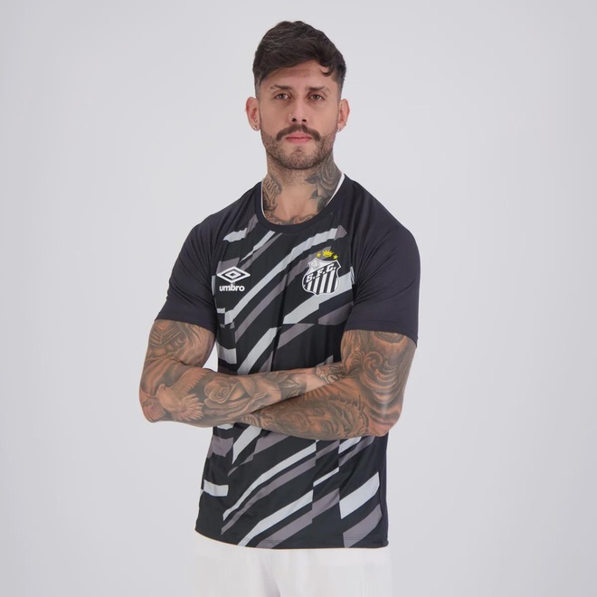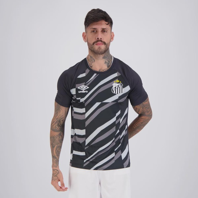 Composição: 93% Poliéster e 07% Elastano Cor predominante: Preta Indicado para: Treino Escudo: Estampado Gênero: Masculino Origem: Nacional Clube: Santos Manga: Curta Gola: Careca Dimensões aproximadas (A x L): P: 72 x 48 cm M: 73 x 52 cm G: 73 x 56 cm GG (2G): 74 x 60 cm EG (3G): 76 x 65 cm