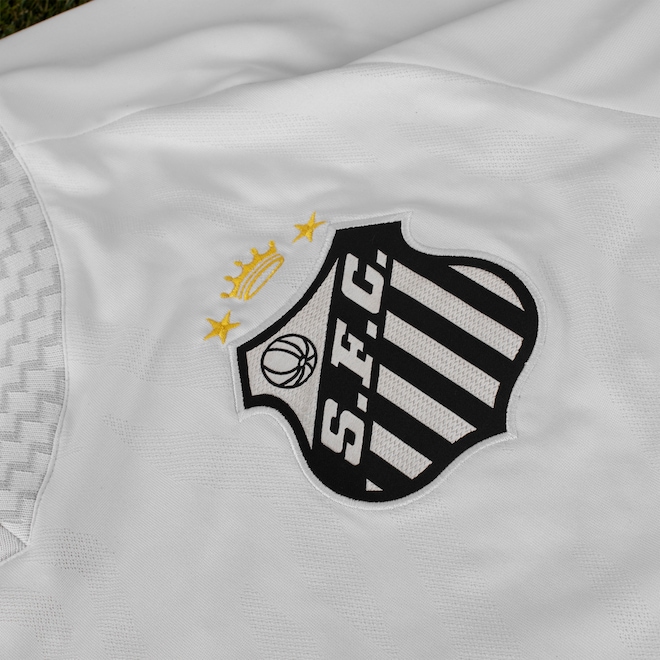 Com gola em "V" canelada, tira interna que diminui o atrito e escudo bordado, esta peça autêntica celebra a história gloriosa do Peixe.