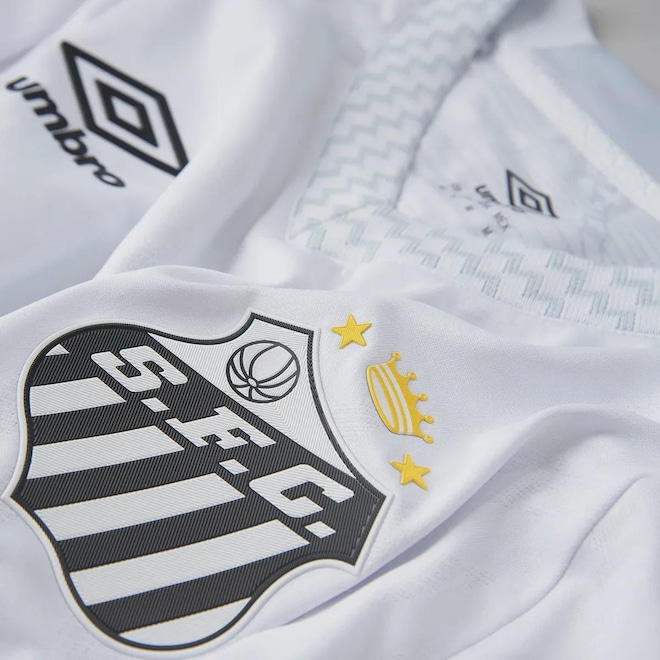 O lugar dos Santos é o topo! A Umbro apresenta a camisa titular do Alvinegro Praiano para 2025. Símbolo de identidade com a cidade, valorizando a ligação do clube com a Baixada Santista, fortalecendo uma história que já soma diversas conquistas. O novo uniforme representa a escadaria de Mont Serrat, ponto turístico da cidade, simbolizando o esforço para subir à Série A. A peça traz design na cor branca com grafismos em zigue-zague na gola, que remetem à escadaria, já na parte inferior direita, um selo especial traz a frase “Glorioso Alvinegro Praiano”, além de exibir o escudo do clube na região do tórax.