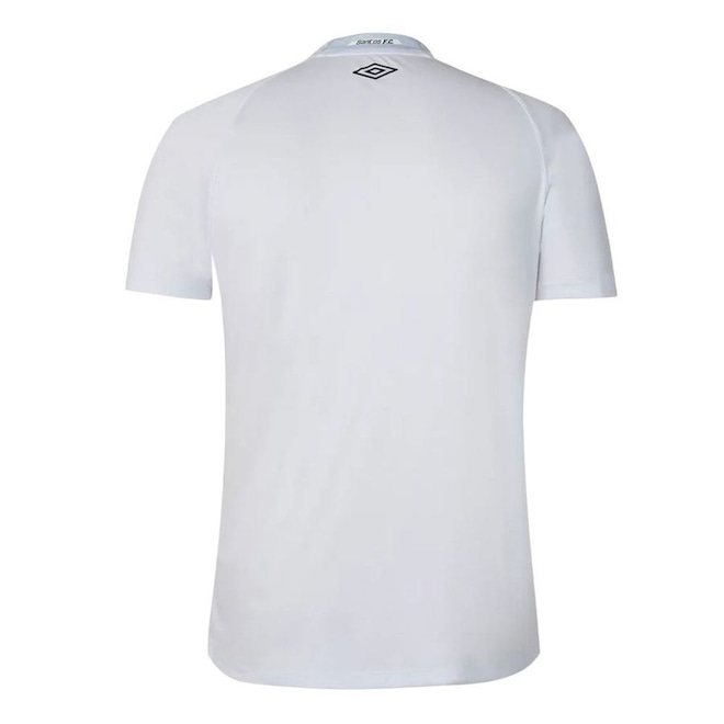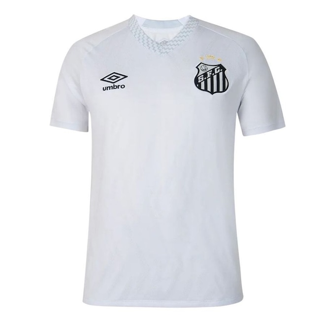 A camisa titular do Santos para 2025, criada pela Umbro, carrega a identidade do Alvinegro Praiano com uma inspiração direta na cidade. O uniforme representa a escadaria de Mont Serrat, trazendo grafismos em zigue-zague que dão personalidade ao visual sem perder a tradição. Leve e confortável para acompanhar a torcida no dia a dia ou nos jogos, o modelo conta com escudo bordado no tórax e gola em V, entregando um acabamento marcante para o torcedor.