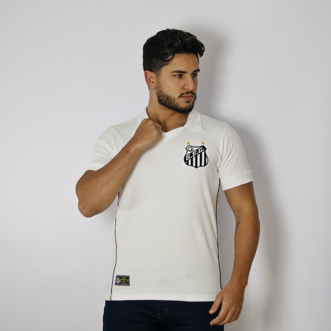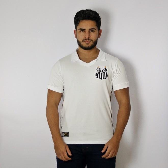 A camisa do Santos 2010 resgata a tradição com um toque de sofisticação. Na cor branca clássica, ela apresenta um estilo retrô marcado pela elegante gola polo e detalhes em linha preta nas laterais, que acrescentam autenticidade ao design.