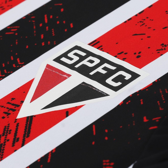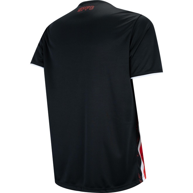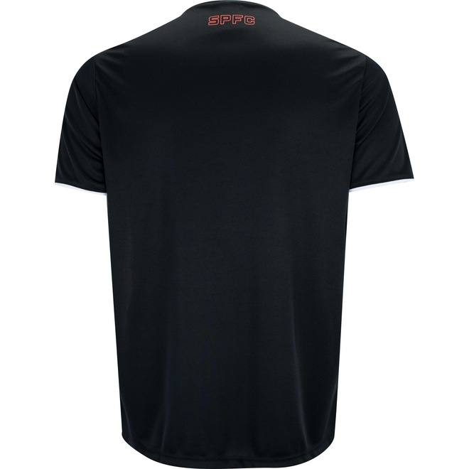 A camisa do São Paulo é de mangas curtas, com gola careca.