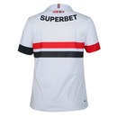 INFORMAÇÕES TÉCNICAS Composição: 100% Poliéster Modelagem: Regular Manga: Curta Gola: Polo, com corte V Escudo: Bordado Estampa: Patrocínio Gênero: Feminino Cor: Branco/Vermelho/Preto Clube: São Paulo FC
