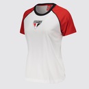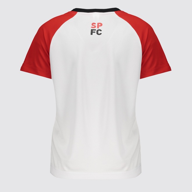 Composição: 100% PoliésterCor predominante: Branca Indicada para: CasualEscudo: Estampado Gênero: FemininoOrigem: NacionalClube: São PauloManga: CurtaGola: Careca Dimensões aproximadas (A x L):P: 58 x 47 cmM: 60 x 49 cmG: 63 x 52 cmGG: 65 x 54 cm