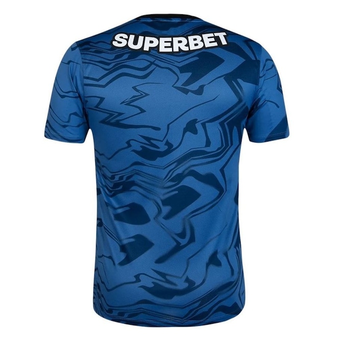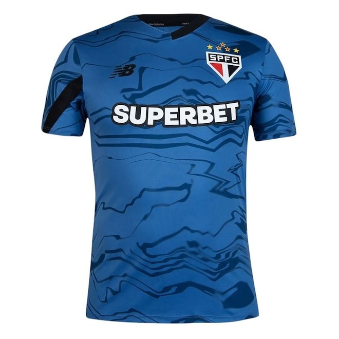 INFORMAÇÕES TÉCNICAS Clube: São Paulo FC Categoria: Clube Gênero: Masculino Cor: Azul Composição Corpo: 95% Poliéster, 5% Elastano Composição Costas: 100% Poliéster Gola: V Escudo: Emborrachado Detalhes: Estampa de patrocinador