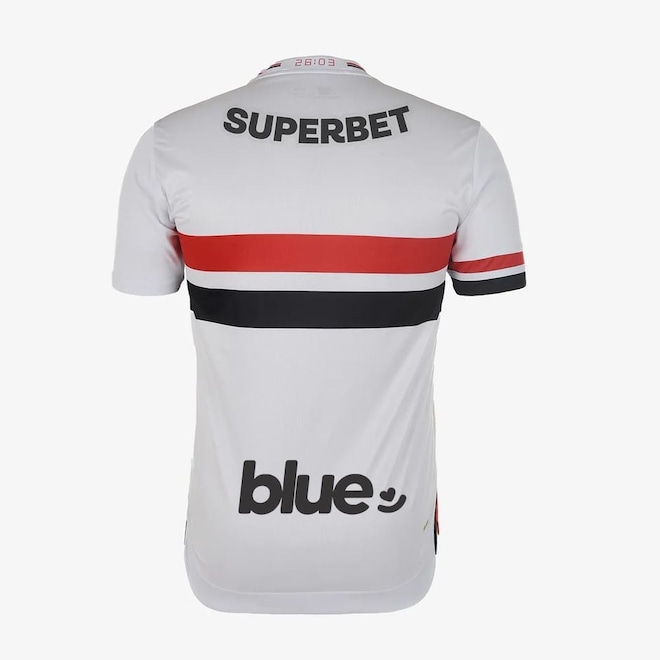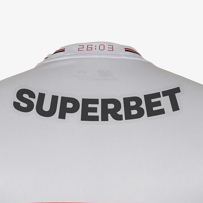 Celebre os 20 anos da conquista do Tricampeonato Mundial com a nova Camisa do São Paulo 2025. Com apliques em TPU (3D), a manga direita da Camisa São Paulo New Balance Jogador remete ao modelo de 2005, enquanto a gola destaca o minuto do gol da vitória “26:03”.