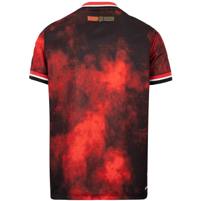 As mangas curtas e gola careca oferecem um visual autêntico, enquanto a estampa personalizada e o logo bordado destacam o amor pelo clube.