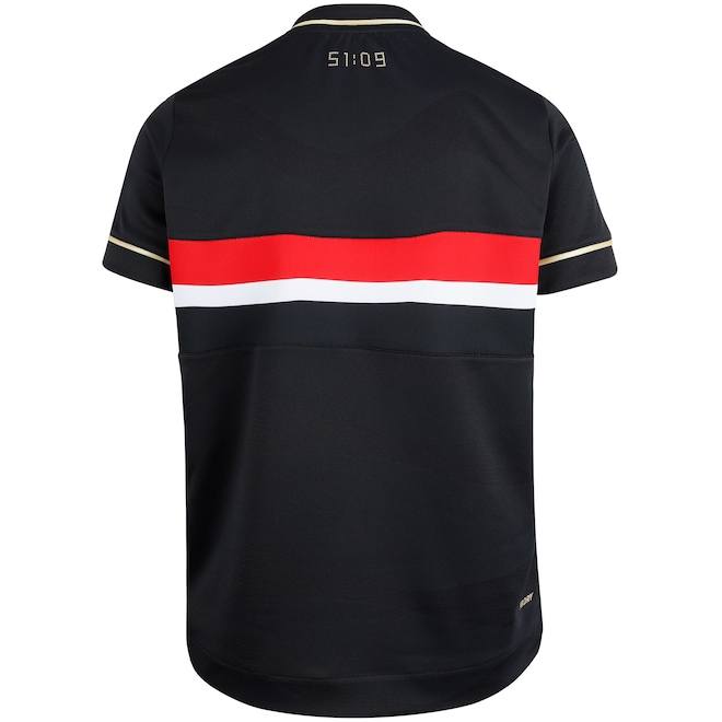 Confeccionada em tecido leve e respirável com a tecnologia NB DRY, que ajuda a manter a pele seca mesmo durante a brincadeira e os treinos, ela oferece caimento confortável e liberdade de movimento para acompanhar toda a energia da criançada. Na parte de trás da barra, a frase “Um é pouco, dois é bom, três só o São Paulo” reforça a tradição e o amor pelo clube.