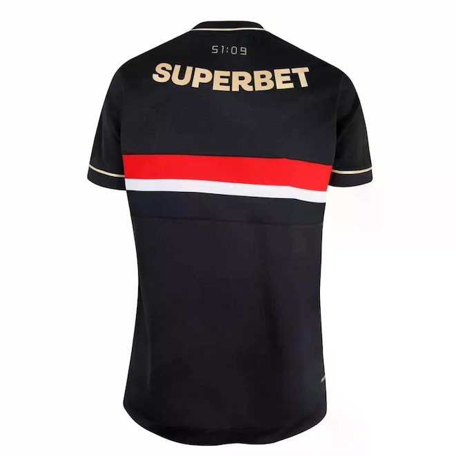 Com caimento pensado para o corpo feminino, ela é feita em tecido leve e respirável com a tecnologia NB DRY, que afasta o suor da pele e mantém o corpo seco até nos momentos mais intensos. O visual moderno da terceira camisa é complementado por um detalhe exclusivo: na parte de trás da barra, a frase Um é pouco, dois é bom, três só o São Paulo eterniza o orgulho pelas conquistas históricas do Tricolor.
