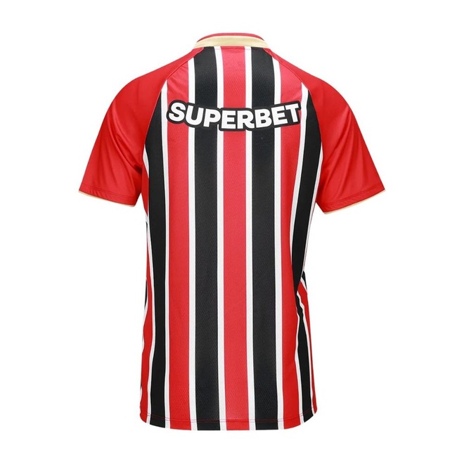 A Camisa São Paulo II 2025/2026 s/n Torcedor Feminina da New Balance homenageia os 20 anos do tricampeonato mundial com um visual imponente e cheio de tradição. Com listras tricolores, escudo bordado e detalhes em dourado, ela traduz a grandeza do clube em cada detalhe. Ideal para torcedoras que querem vestir sua paixão com conforto e estilo, dentro ou fora dos estádios.