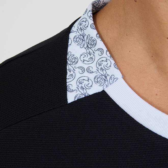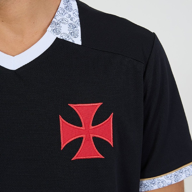 Com design moderno e cor predominante preta, apresenta gola decote v com acabamento detalhado e mangas curtas que garantem conforto e estilo. O escudo do clube, bordado no peito, reforça o orgulho cruzmaltino. Confeccionada em tecido leve e resistente, é ideal para o dia a dia, eventos casuais ou para acompanhar os jogos do Vasco com autenticidade e sofisticação