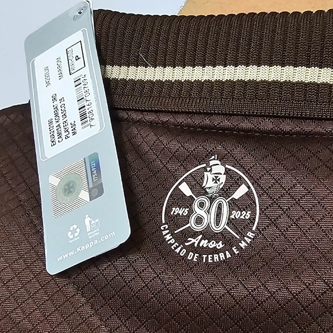 Celebrando os 80 anos de uma das conquistas mais emblemáticas da história vascaína, a nova camisa III do Cruzmaltino presta tributo ao título invicto do Campeonato Carioca de Futebol de 1945 e ao Campeonato Carioca de Remo do mesmo ano — reafirmando o legado de excelência em terra e mar.