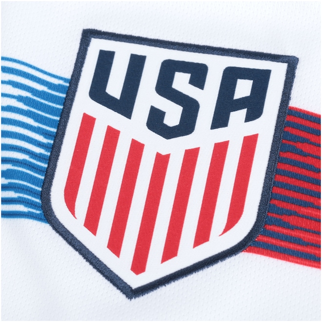 Confeccionada em poliéster, a Camisa de futebol Nike foi criada para os jogos de 2018 e é uma ótima opção para o jogador ter maior liberdade e naturalidade dos movimentos enquanto joga. O escudo da Seleção dos Estados Unidos em destaque permite que você demonstre todo orgulho pela The Red, White & Blue (A Vermelha, Branca e Azul) dentro e fora dos gramados.
