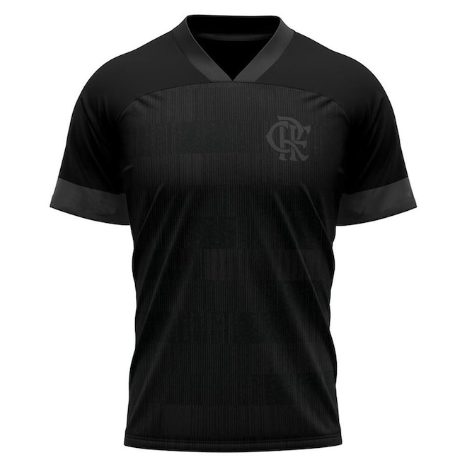 Ela é construída em poliéster, exibe visual na cor preta/chumbo e traz o escudo estampado em destaque no tórax.