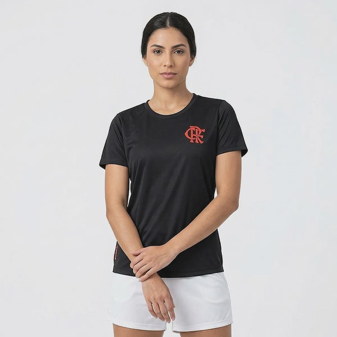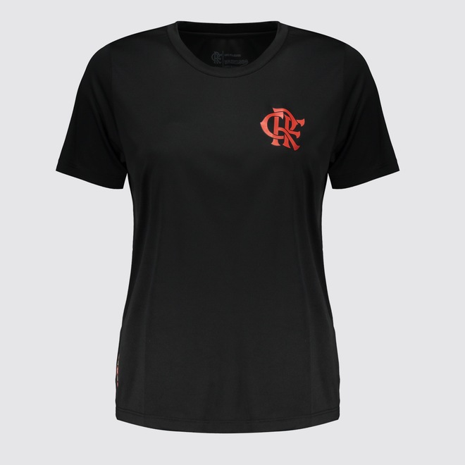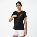 Composição: 100% Poliéster Cor predominante: Preta Indicada para: Casual Escudo: Estampado Gênero: Feminina Origem: Nacional Clube: Flamengo Manga: Curta Gola: Careca Dimensões aproximadas (A x L): P: 60 x 46 cm M: 62 x 49 cm G: 64 x 52 cm GG: 67 x 55 cm