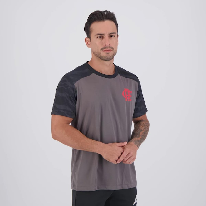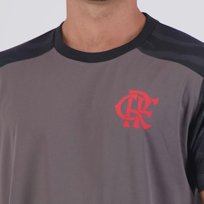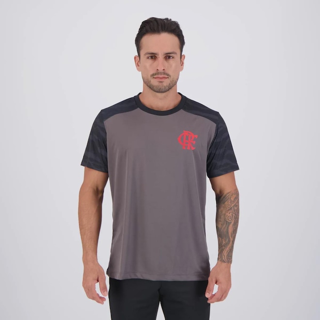 Composição: 100% Poliéster Cor predominante: Cinza Indicado para: Casual Escudo: Estampado Gênero: Masculino Origem: Nacional Clube: Flamengo Manga: Curta Gola: Careca Dimensões aproximadas (A x L): P: 70 x 54 cm M: 72 x 56 cm G: 74 x 58 cm GG: 76 x 60 cm EG: 78 x 62 cm