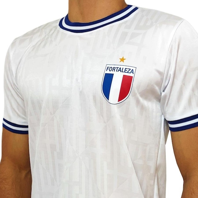 Produzida em 100% poliéster leve e respirável, a peça conta com um design ousado e retro, na cor ', além do escudo retro do Fortaleza estampado do lado esquerdo do peito.