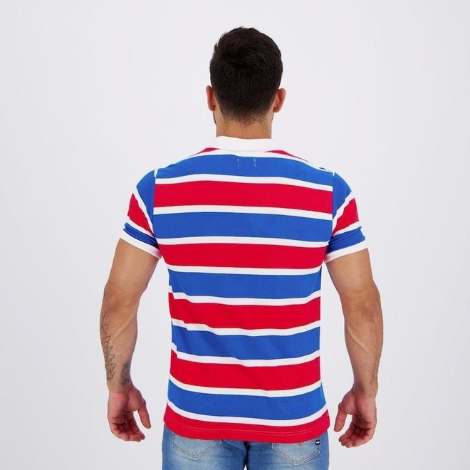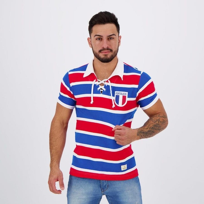 Desenvolvida especialmente para os apaixonados pela história do Tricolor do Pici, a camisa retrô do Fortaleza celebra o centenário do time. A peça é confeccionada em algodão macio e de excelente caimento ao corpo. Seu design clássico traz as cores da equipe, vistas em faixas horizontais por toda a composição. Há ainda, detalhes em branco no punho das mangas e na gola, que por sua vez, é polo e possui abertura regulada por cordinha, agregando muito charme ao visual. Por fim, do lado esquerdo do tórax, o escudo do clube é visto bordado. Adquira já e complete sua coleção de mantos!