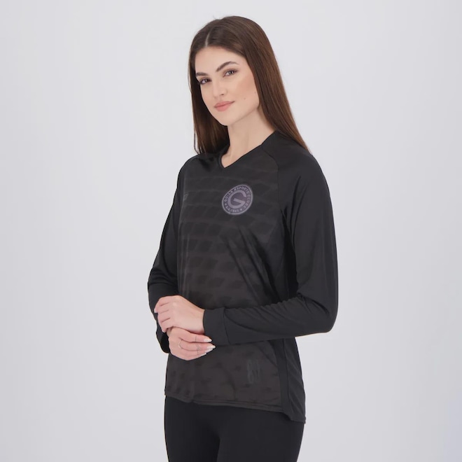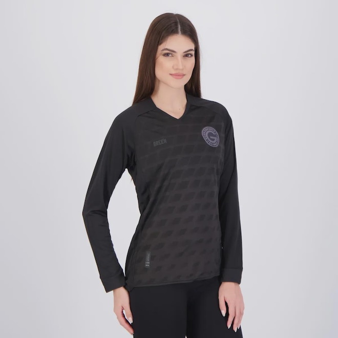 Composição: 100% Poliéster Cor predominante: Preta Indicada para: Goleiro Escudo: Aplicado Gênero: Feminino Origem: Nacional Manga: Longa Clube: Goiás Gola: Careca Dimensões aproximadas (A x L): P: 64 x 43 cm M: 66 x 45 cm G: 68 x 47 cm GG: 70 x 49 cm EG (3G): 72 x 51 cm