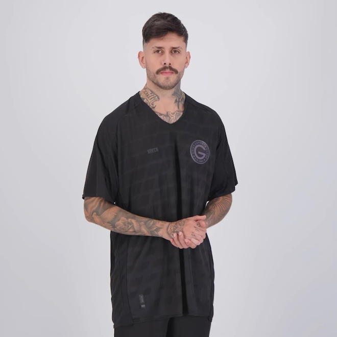 Composição: 100% Poliéster Cor predominante: Preta Indicado para: Casual Origem: Nacional Escudo: Aplicado Manga: Curta Clube: Goiás Gola: V Dimensões aproximadas (A x L): P: 81 x 57 cm M: 83 x 59 cm G: 85 x 61 cm GG: 87 x 63 cm EG: 89 x 64 cm EEG: 91 x 66 cm 7G: 87 x 69 cm
