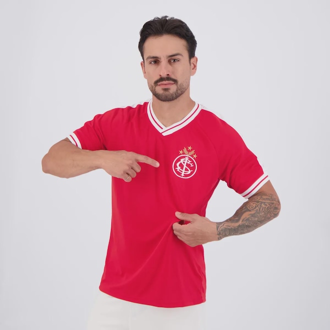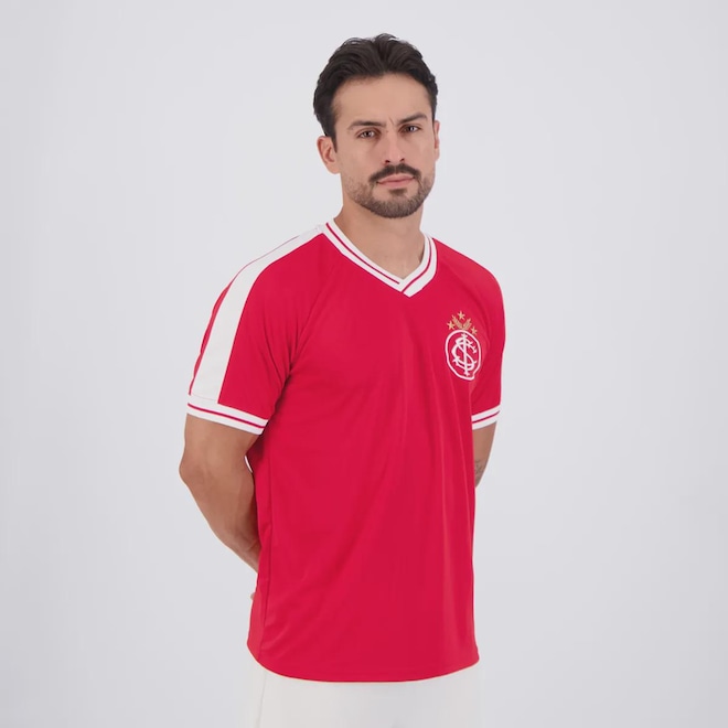Composição: 100% Poliéster Cor predominante: Vermelha Indicado para: Casual Clube: Internacional Gênero: Masculino Escudo: Bordado Origem: Importada Manga: Curta Gola: V Dimensões aproximadas (A x L): P: 72 x 54 cm M: 74 x 56 cm G: 76 x 58 cm GG: 78 x 60 cm EG: 80 x 62 cm